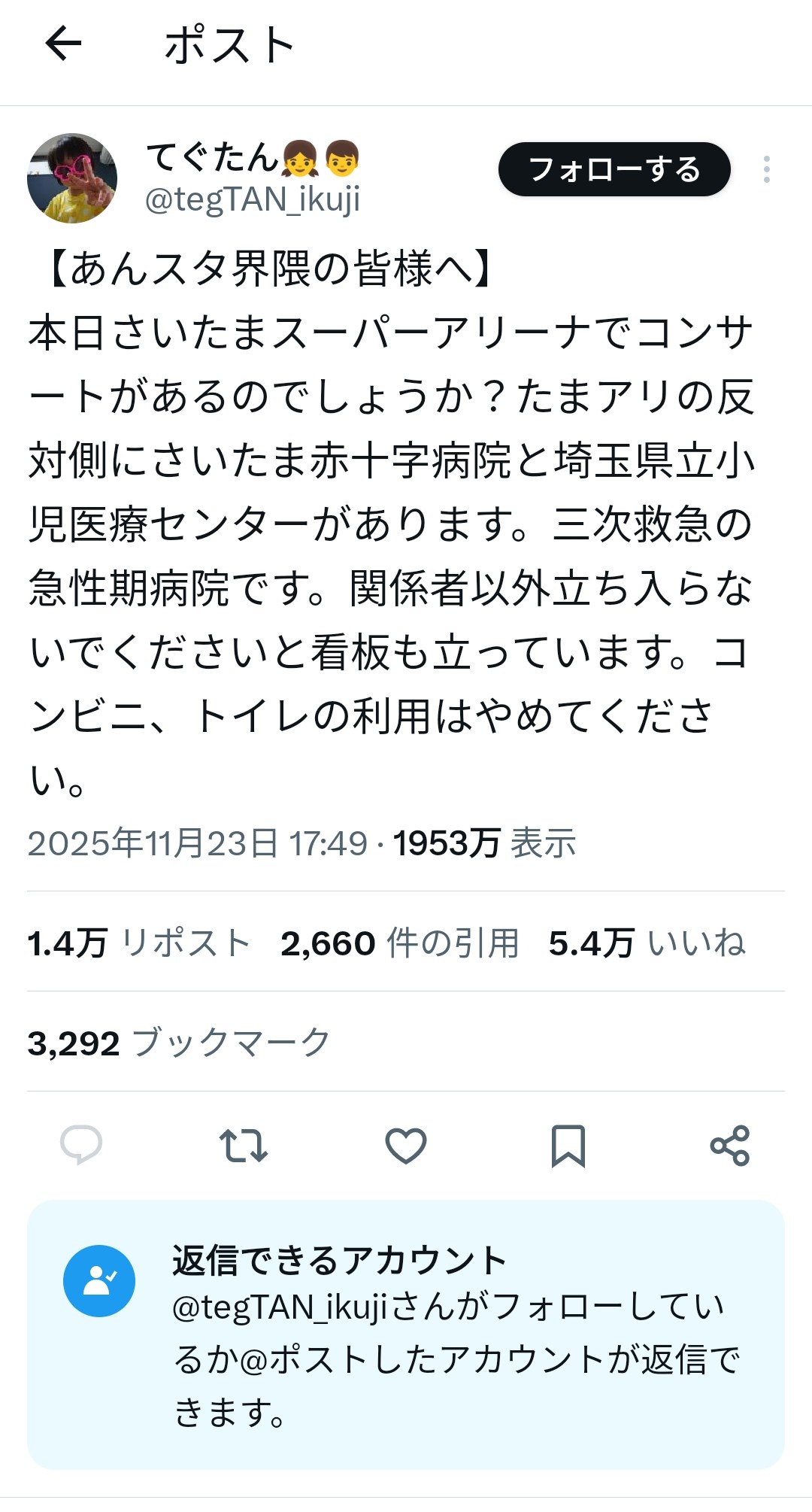 さも病院の代表かのようにポスト