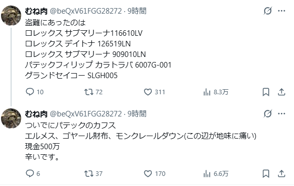 時計買いまくってる奴として狙われてたんだろうな