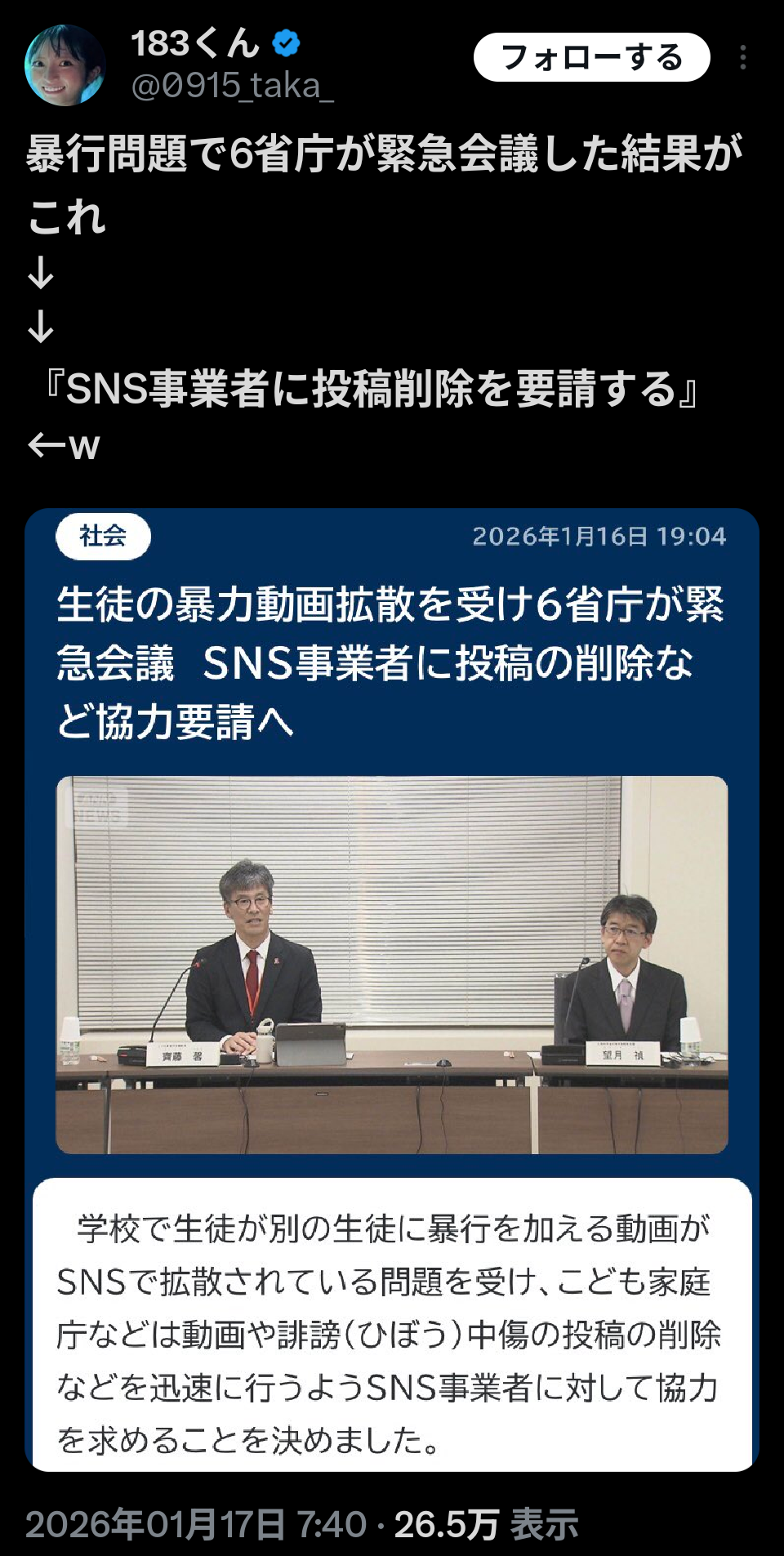 ってなるだけだからな、そりゃ犯罪者と共犯の学校以外は納得しないわ