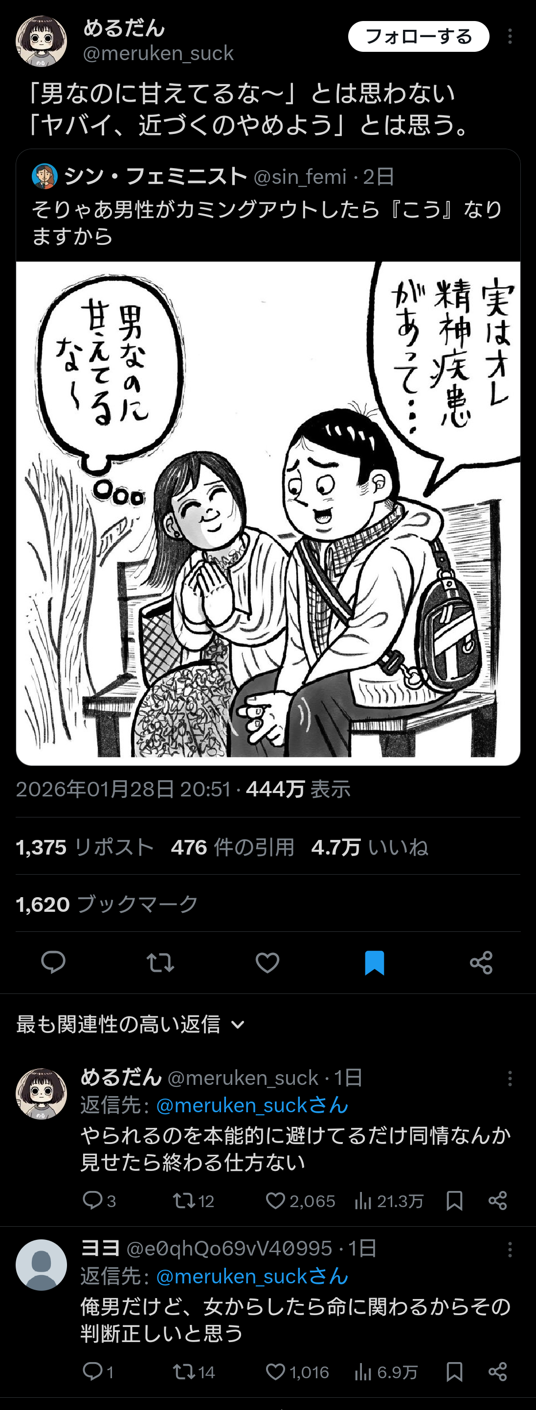 精神の弱い男 ← ヤバっ近づかないどこ